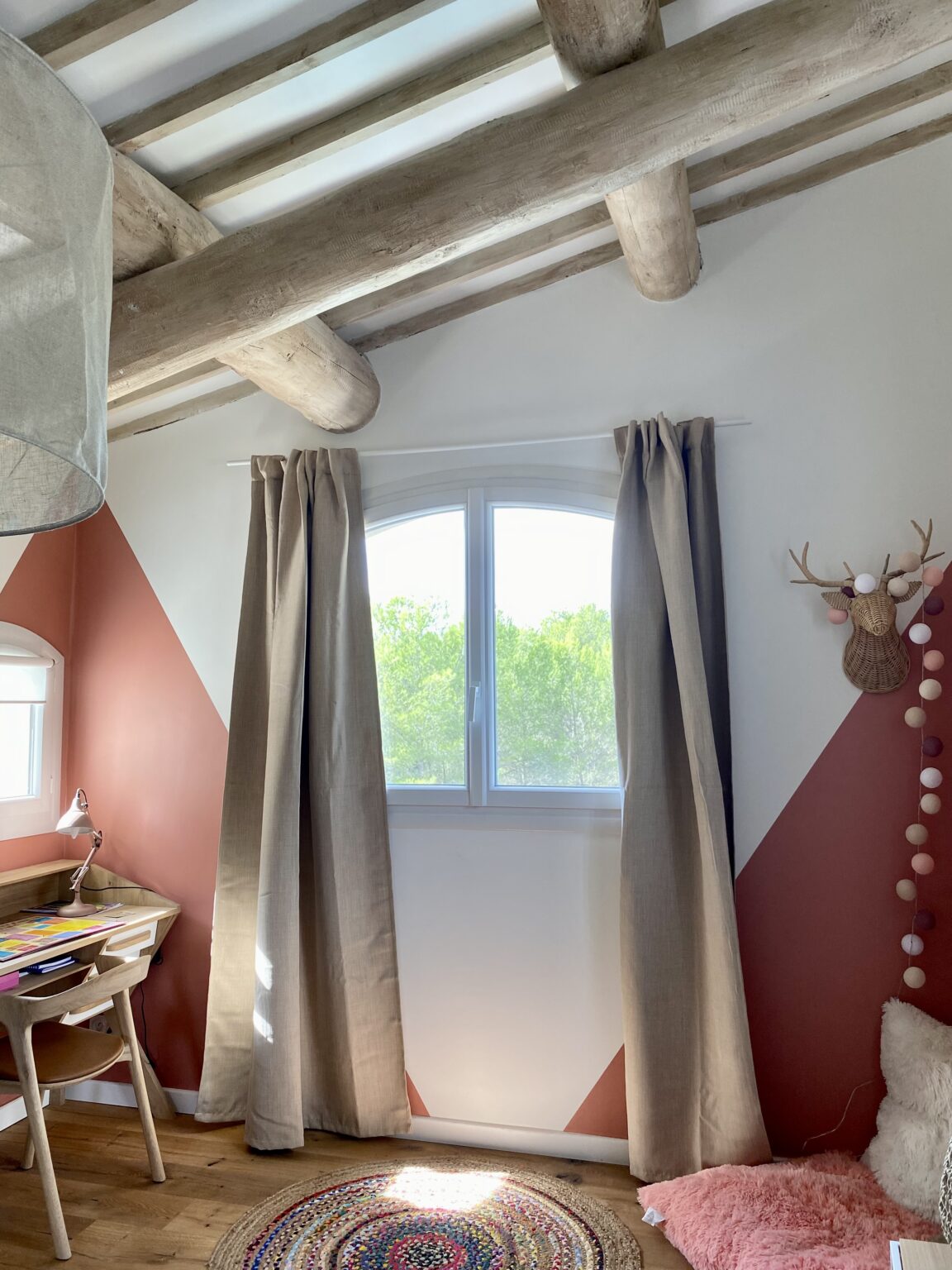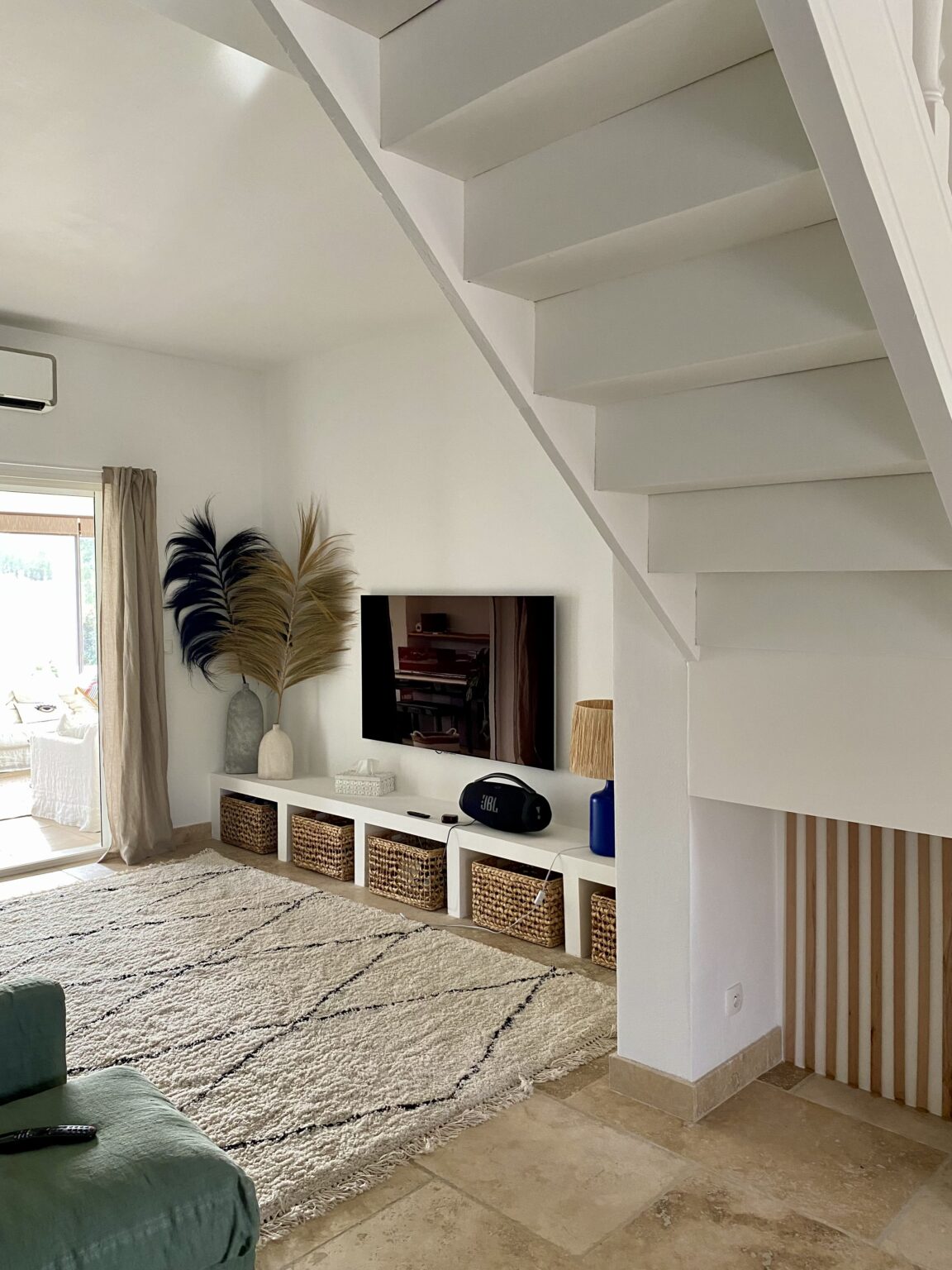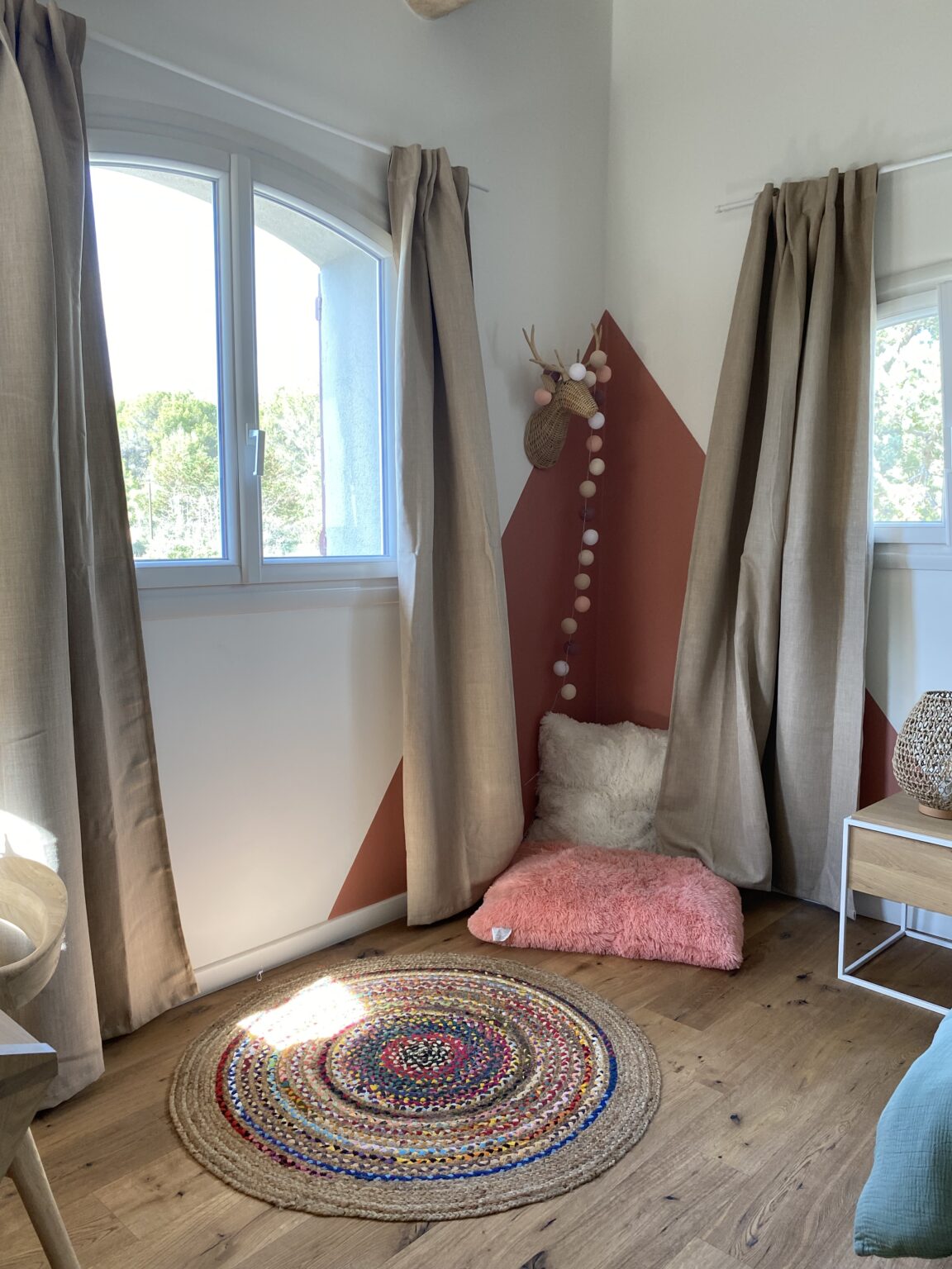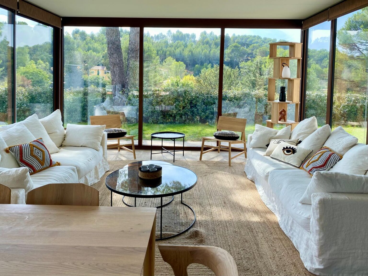 Ce projet de rénovation transforme une bâtisse rustique en une résidence « soft minimal » pour des clients expatriés de retour du Canada, désireux de vivre un esprit de vacances au quotidien. La création de la cuisine s’impose comme le cœur battant du foyer, mêlant un îlot blanc épuré à la chaleur du bois sous des poutres d’origine restaurées. La décoration décline un fil conducteur méditerranéen via une palette organique (sable, blanc cassé) et des matières naturelles comme le rotin, le lin et le travertin. Enfin, la rénovation de la salle de bain achève cette métamorphose en un havre de détente moderne.