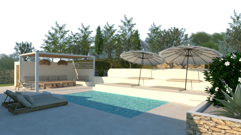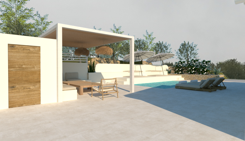 Création d’un intérieur et d’un extérieur pour une maison de vacances de 160m² au Puy-Sainte-Réparade.